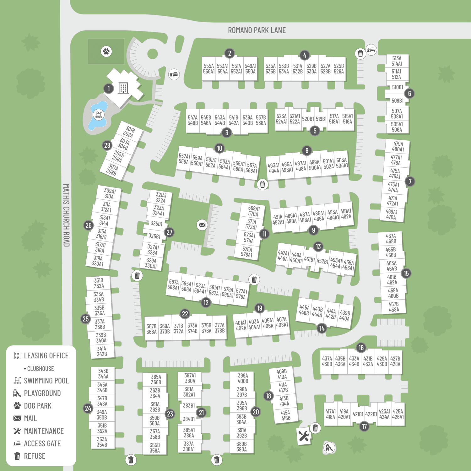 Select a floor plan or bedroom count to view those units on the overhead view on the site map. If you need assistance finding a unit in a specific location please call us at 281-444-6776 TTY: 711.
